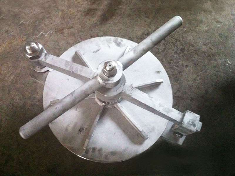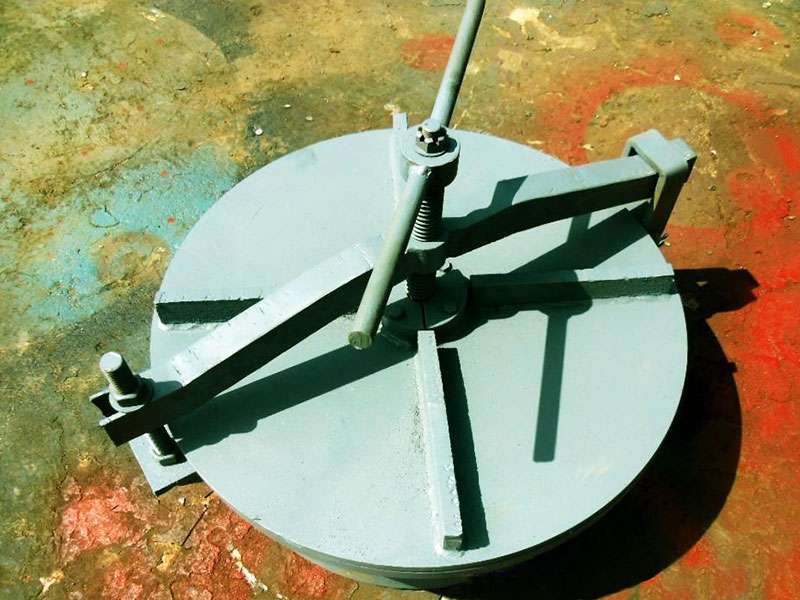 旋柄快開人孔即縮小的人孔,其安設是為了安裝、拆卸、清洗和檢修設備內部裝置。 旋柄快開人孔的結構基本相同,由一個短筒節,蓋上一塊盲板構成。旋柄快開人孔直徑一般為150~250mm,應使工人戴上手套并握住工具的手能方便地通過,標準化旋柄快開人孔的公稱直徑有DN150、DN250兩種。當設備公稱直徑大于或等于1000mm時,宜設置旋柄快開人孔。